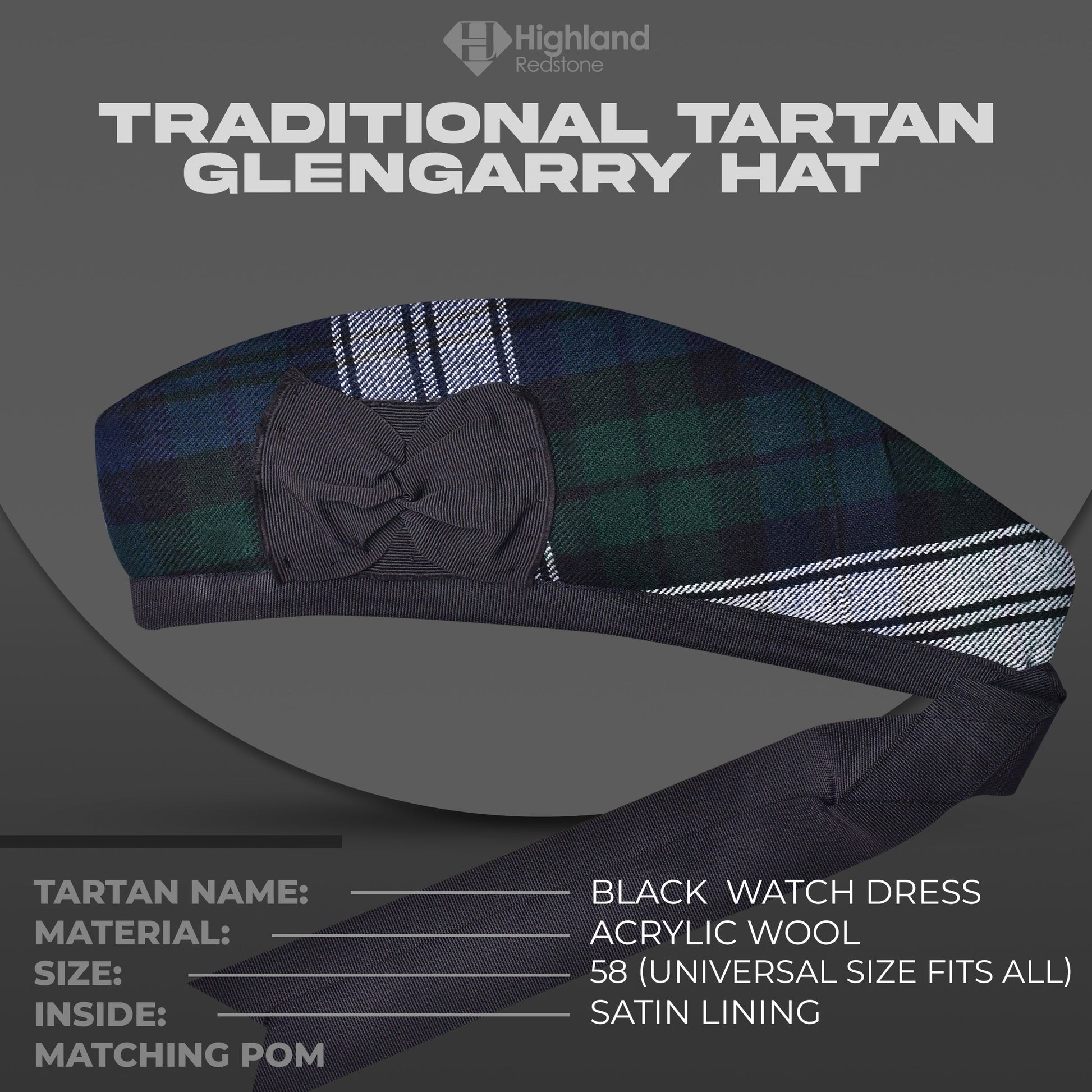 Whether you're attending a Highland wedding, leading a pipe band, or celebrating your heritage on a national day, the Highland Redstone Glengarry Hat brings authenticity and distinction to your attire.